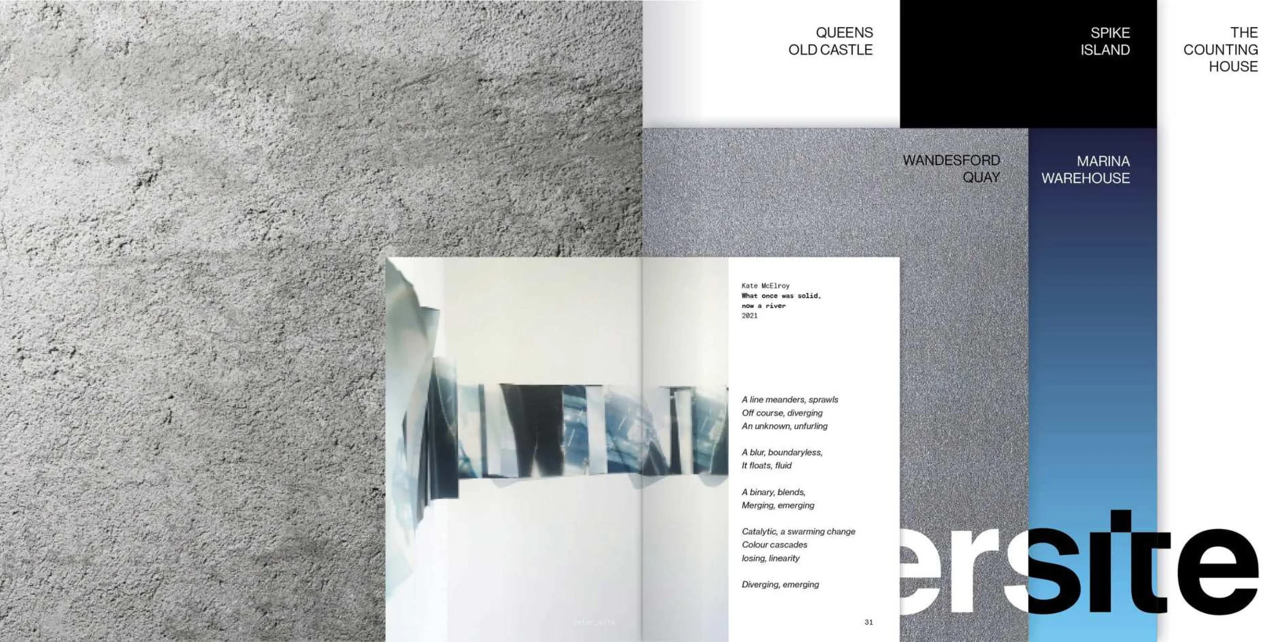Divided into sections, like multiple sites, the publication catalogues six Cork-based site responsive exhibitions from 2021 to 2023. Accompanying texts for each exhibition including words by Sarah Long, Dr Eve Olney, Pádraig Spillane, Maitiú Mac Cárthaigh, and Lara Curran.